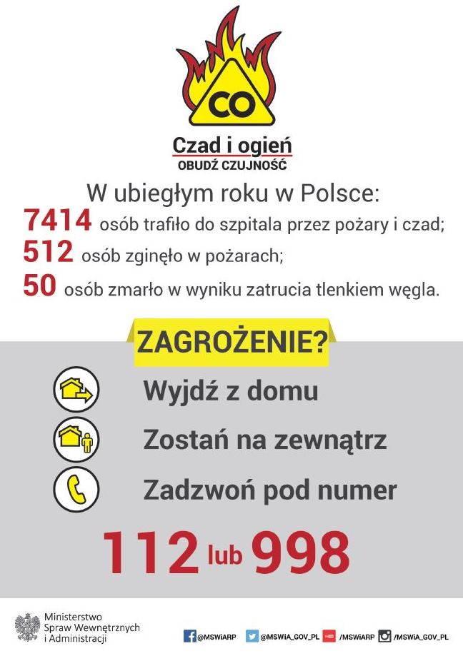 Obudź czujność!” Celem przeprowadzanej ogólnopolskiej akcji pod patronatem Komendy Głównej Państwowej Straży Pożarnej , jest uświadomienie społeczeństwa w zakresie zagrożeń płynących z emisją tlenku węgla przez przeciwdziałanie pożarom w domach i mieszkaniach, a co za tym idzie ograniczenia liczby osób poszkodowanych.